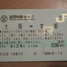昼間特割きっぷはJR西日本の12券片の回数券です。