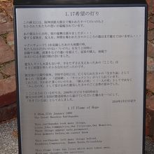 神戸ルミナリエ (こうべるみなりえ) に有る、希望の灯りです。これは、1995年の阪神淡路大震災を受け、震災によって奪われてものを振り返り、それにより更に、より一層、培われた思いやりや絆等を想う、灯です。ぜひ、灯を見てみてください。
