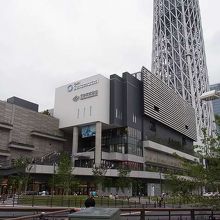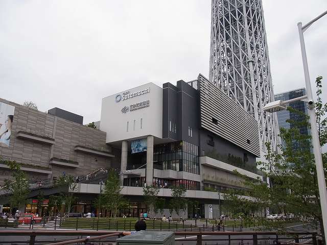 そのスカイツリーの足元にあるのが、このソラマチです。5階建くらいのショッピングセンターで、お土産屋から服や食料品など様々なお店が揃っています。
