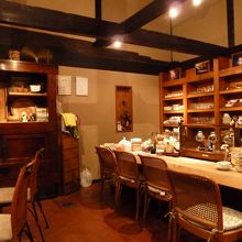 店内も木を生かしたインテリアの落ち着いた雰囲気。