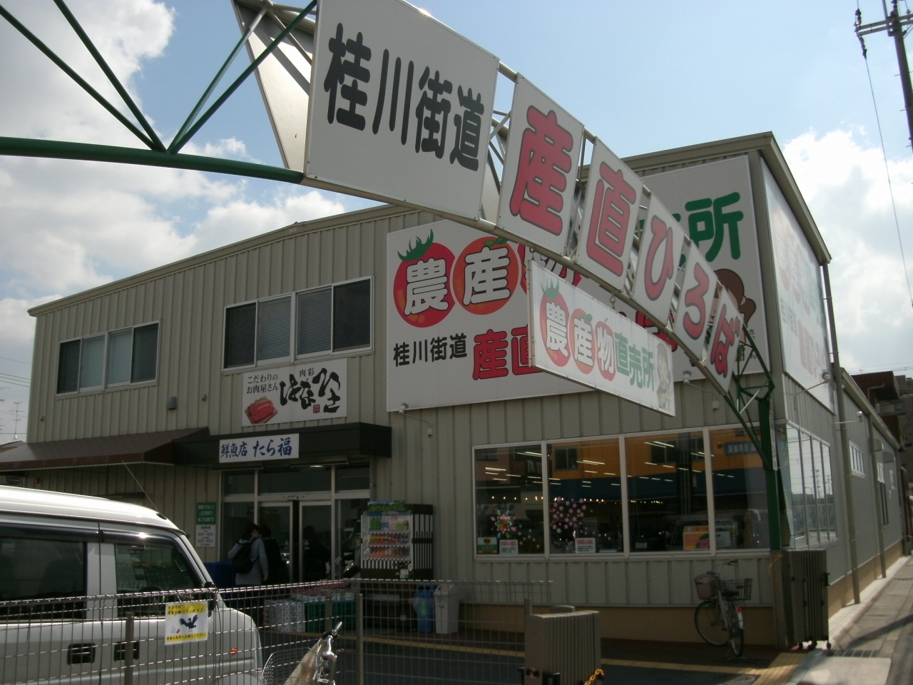 「桂川街道 産直ひろば」さんは、桂川街道がJR京都線を潜ってすぐのところにあります。広い駐車場があり入りやすいお店です。京都府内一円の農産物生産者さん達から直接届けられたフレッシュな野菜を売りにしているお店です。店内は明るく綺麗で、野菜や果物、花などのほかに鮮魚や精肉のコーナーもあり食品専門の小型のスーパーの様な感じです。どの商品も、新鮮で安いし、時々珍しい野菜などがあるので覗いてみるのが楽しみなお店です。