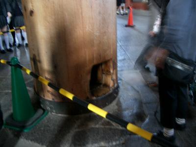 次に、順路に従って左手から大仏の裏に回ると、穴の開いた柱がある。