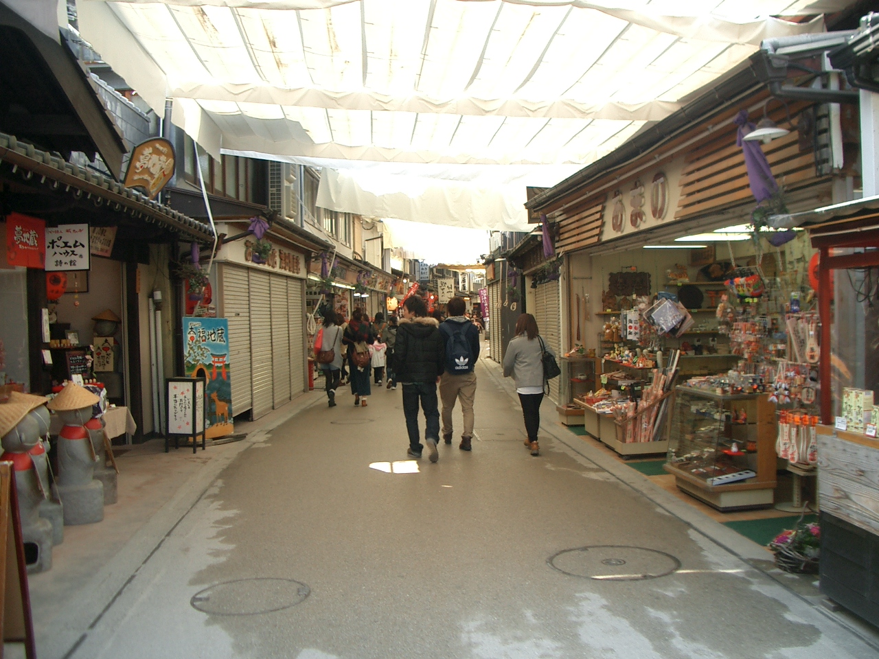 宮島フェリーポートから厳島神社に向かう途中にある商店街通りです。