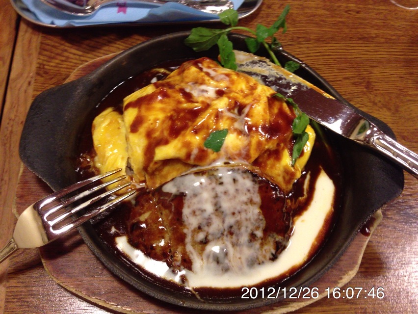 オムライスは、卵がふわっふわで、デミグラスの味付けが一般のものとは少し違う感じ。