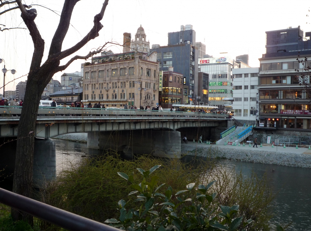 鴨川にかかる橋は少なく、四条大橋を逃したら北へは三条大橋までありません。