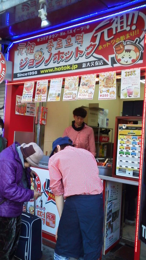 「ジュンノホットク」というのはなんでも韓国の昔からの屋台などで食べるおやつのようなもので、それが日本でも食べられるようになったとのこと。この店は各地に店を出しているが、やはり、韓流ファンの聖地である新大久保でも行列をなしていました。はちみつ味のおやつ感覚で頂けました。特に女性が列をなしていましたね。
