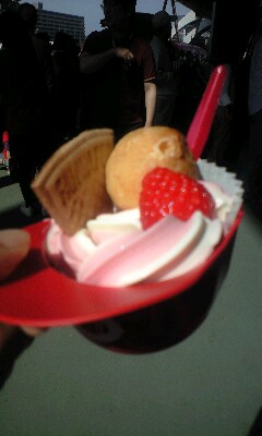 カープのヘルメットに入ったミニパフェが可愛かったので買いました。