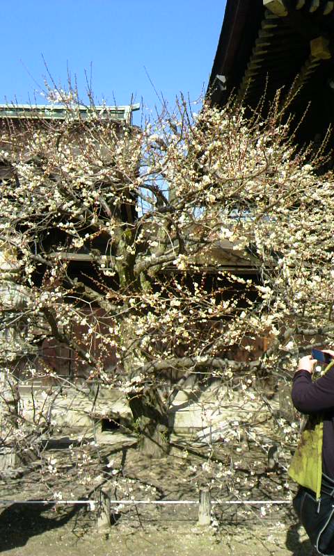 北野天満宮は菅原道真公をおまつりした神社。地下鉄今出川駅からバスに乗り、北野天満宮前で下車。菅原道真公が梅を愛したことから、約2万坪の境内には50種約千5百本の梅の木が植えられている。梅苑は二月初旬から公開されていて、境内には綺麗に咲き誇っている梅の花からのほのかな香りがたちこめていました。