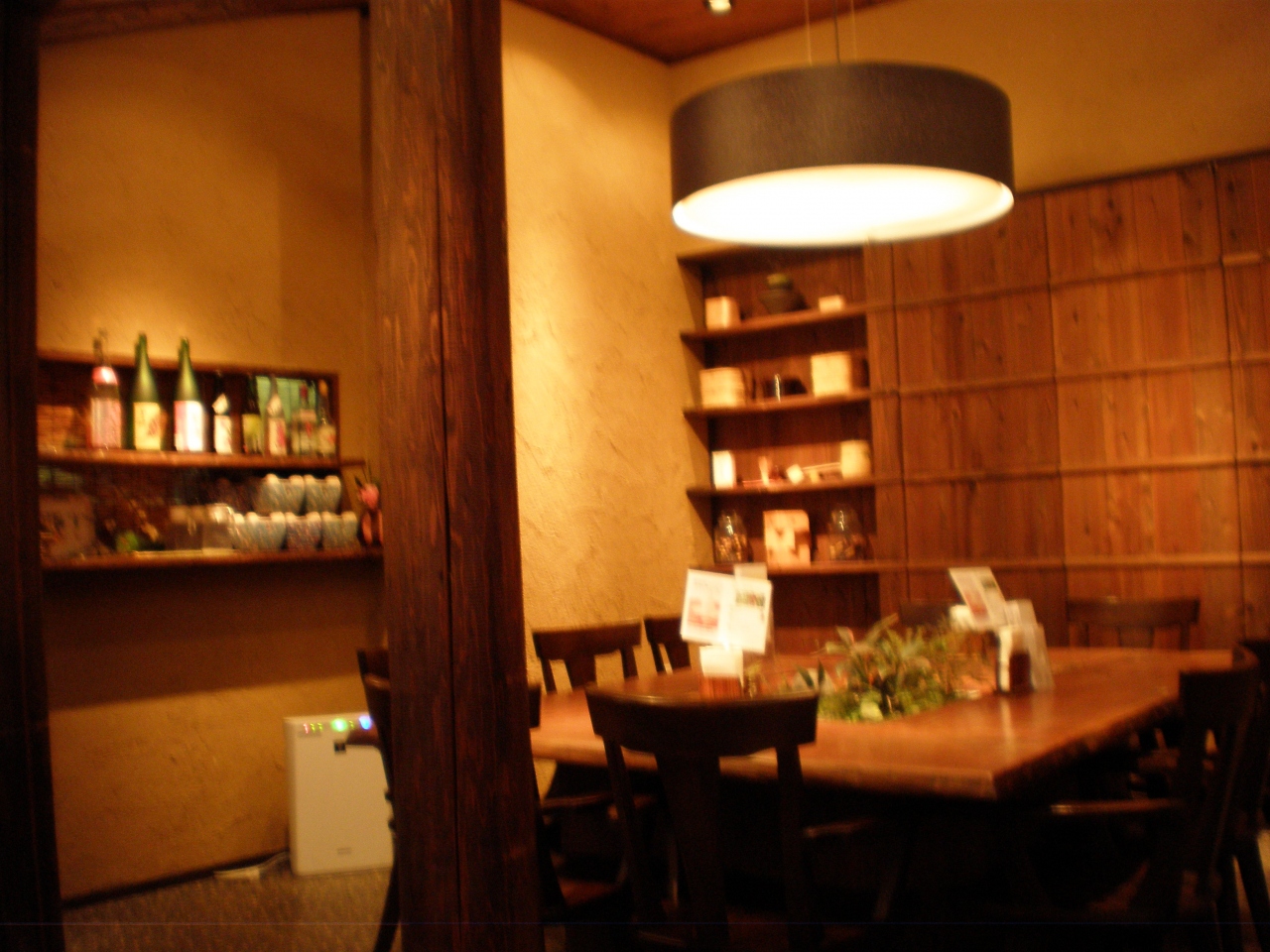 お店を見つけました。民芸調の落ち付ける店内は木の温もりをかんじながら軽い食事の後