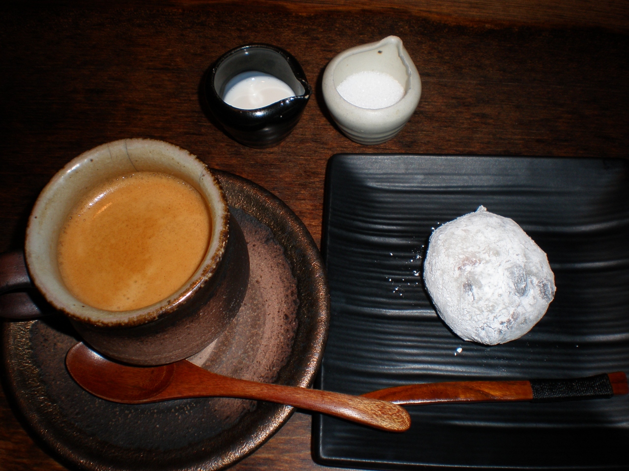 店頭の黒豆大福をコーヒーとともにデザートで頂きました。
