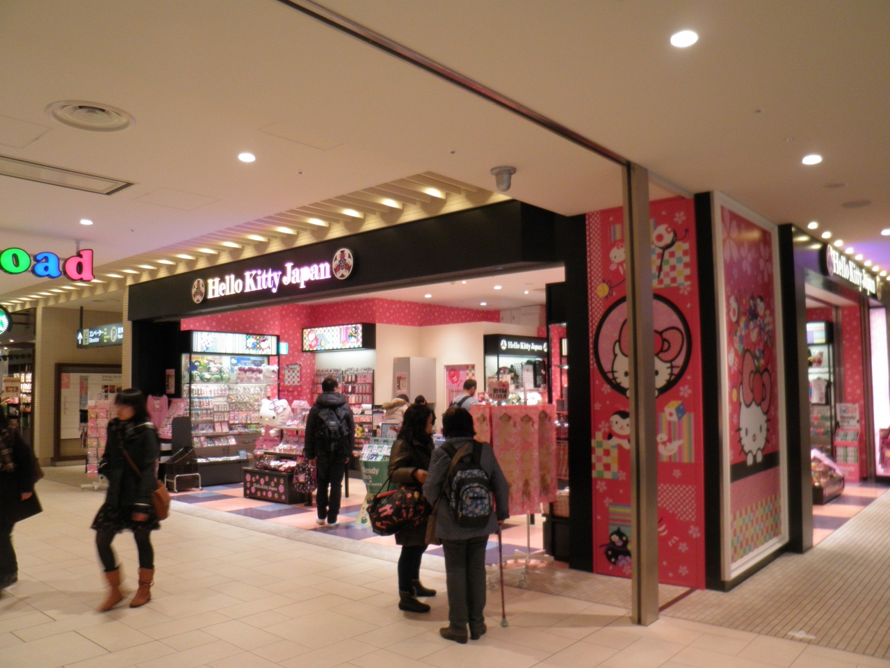 新千歳空港で飛行機の待ち時間にぐるぐるショッピングを楽しみました。 国内線ターミナルから国際線ターミナルの長い通路あたりが一番特色があって楽しかった。なかでも、ハローキティのショップはピンク色の装飾で楽しい感じでした。 外国人観光客もこのショップ前で記念撮影をしていました。特に、大きなスルメの干物が1個1100円でお買い得でした。