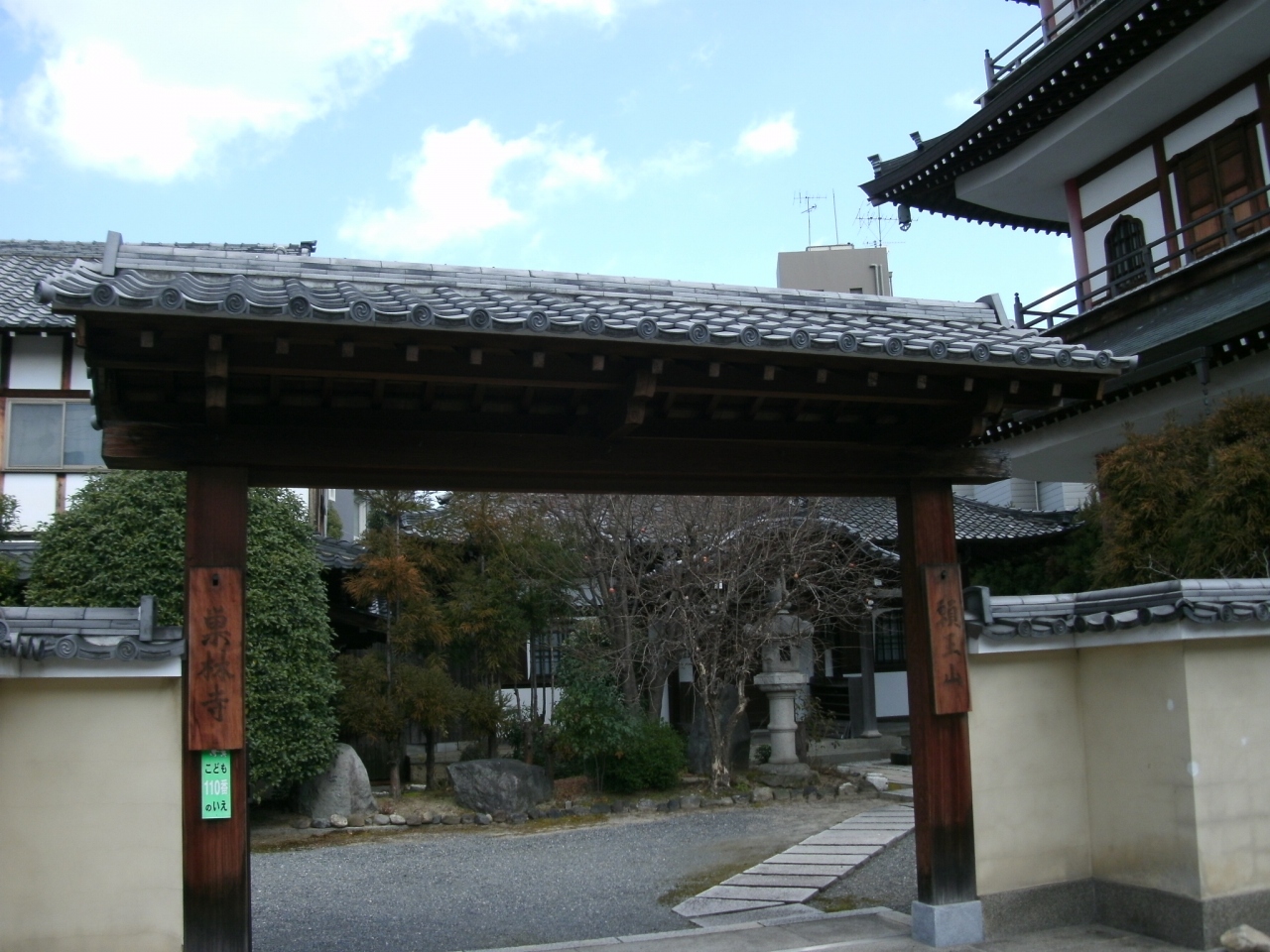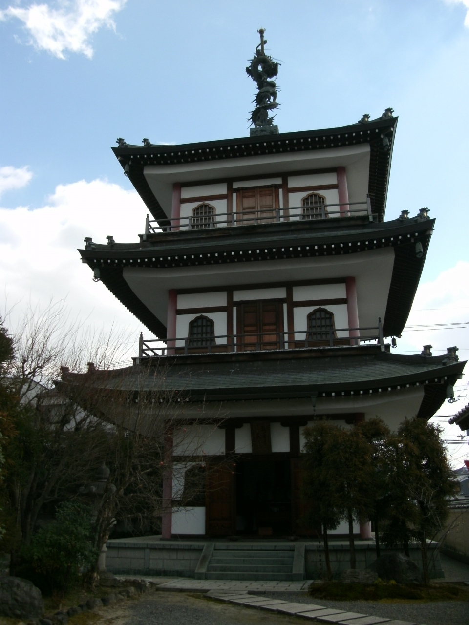 「巣林寺」は、桂川街道の“徳大寺信号”を西に入ったところにあります。臨済宗 妙心寺派のお寺です。境内にある三重塔の一番上の“相輪”の部分に大きな“龍”が巻きついています。初めてこの光景を遠くから見たとき、その異様な造型に目を引かれました。お寺に入って、近づいて見ますとなかなか迫力の在る大きな龍で、デザイン的にも面白いと思いました。