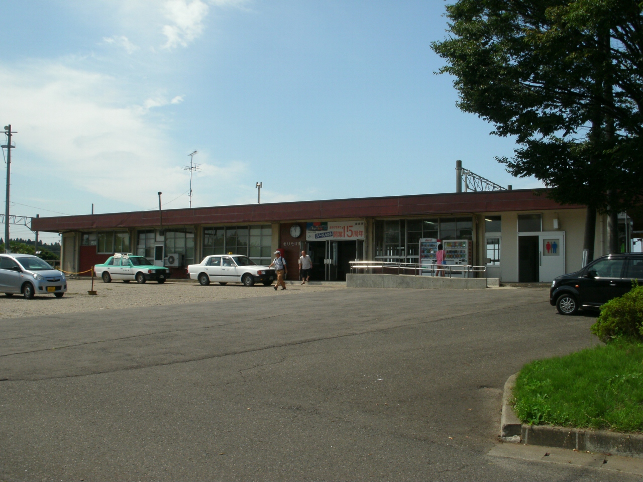 三種町にあるJR奥羽本線の駅です。国道から内陸に入ったところで、独立した立派な集落を持っています。駅舎もしっかりしており、優等列車が停まる駅にふさわしいたたずまいです。駅前は静かで、コンビニも少し歩かなければありません。