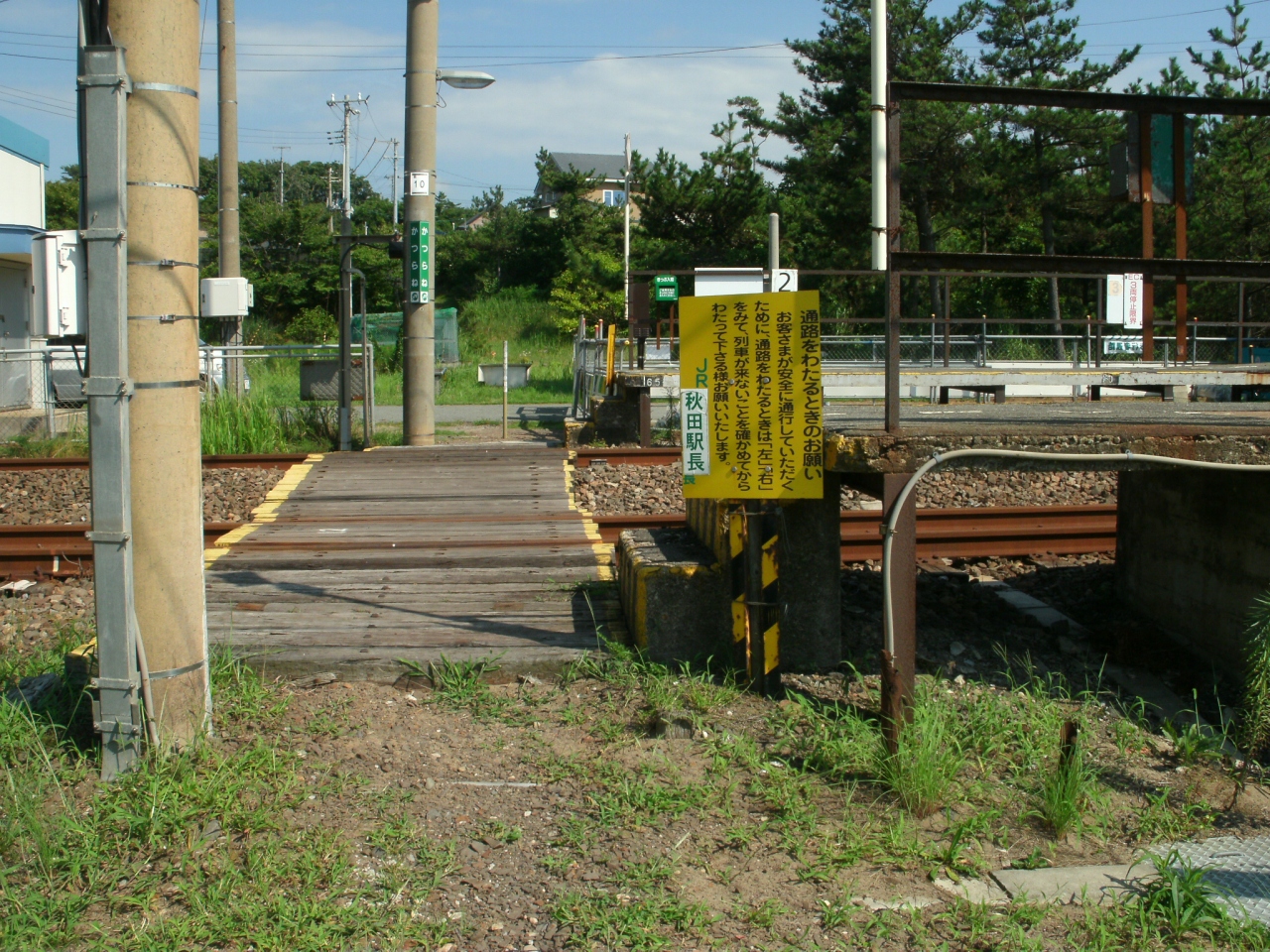 秋田市内にあるJR羽越線の駅です。秋田市の市街地がちょうど途切れるところ。周辺は寂しいわけでもないのですが、駅利用客はかなり少ないようです。元信号所ということで簡素な作り。普通列車もこの駅は通過する列車が多いです。