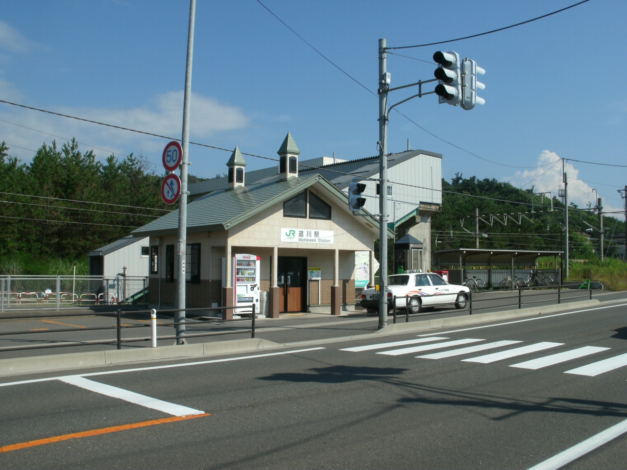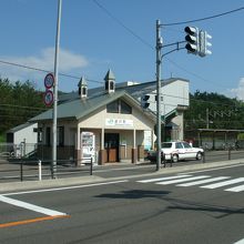 秋田市から由利本荘市に入ったところにある駅です。となりの下浜駅とまったく同じような作りで、駅前は国道7号が走っており、かなりの交通量です。駅構内は広々としているのですが、駅前にはほとんどスペースがありません。それでもタクシーの便があります。