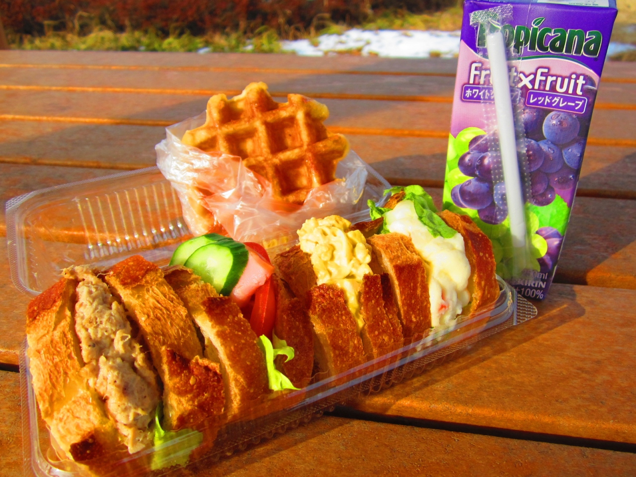 パーティーサンドはひとつひとつが小さくてお腹一杯にはなりませんが、それぞれ具がびっしり入っていてポテトサラダが特においしかった。耳もカリカリ。ベルギーワッフルは1個¥130でお得でした。子供が夢中になって食べていました。