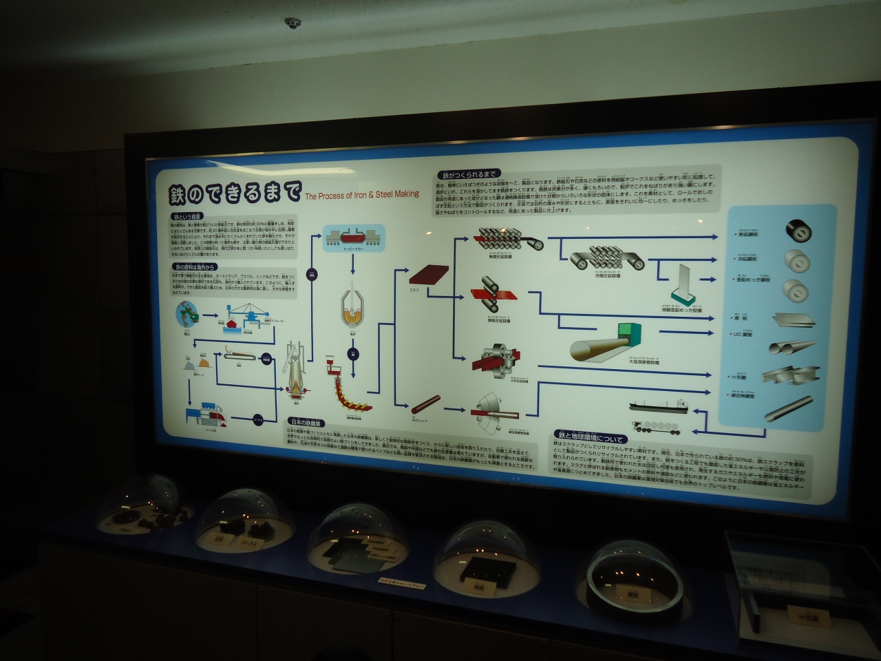 地下鉄四つ橋線の駅から歩いて五分くらいです。靫公園の横にあります。入場は無料で靫公園に来られた時に行かれるのはどうでしょうか。展示物は一階にありました。鉄が出来るまで、焼却炉、磁石、超音波など絵や実物を使って分かりやすく解説してありました。