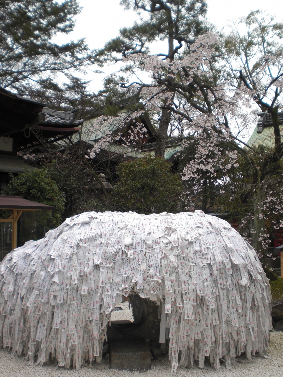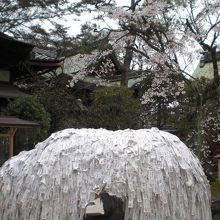 境内には願い事が書かれたお札がびっしり貼られた碑があります。