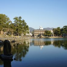 猿沢池は、遠景の興福寺五重塔と池の周囲の柳が一緒に水面に映る風景が奈良八景の一つとして、有名な池。ただ、夏には、何かこもったような匂いもして、私としてはあまりきれいな庭ではないような印象です。ただ、今回は、冬の時期だったので、その辺は大丈夫。穏やかな天気で、湖面の映りがいい感じでした。