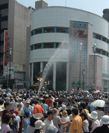 50台余りの神輿に水をかけながら練り歩く連合渡御は壮大です。