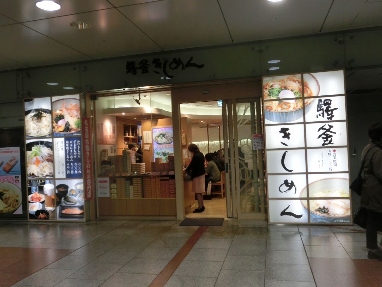 名古屋駅のコンコースで釜揚げきしめんが頂けます。きしめんといってそんなにありがたがる物ではないのですが、ついつい食べてしまいます。ここでは冷たいきしめんもありますが、昔はこちらの地方では冷たい物はなかったです。讃岐うどんの影響でしょうね。でも冷たいのもおいしいです。