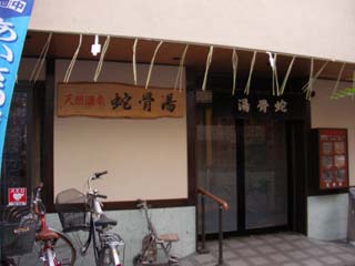 浅草にある改装した温泉銭湯蛇骨湯に向かいます。すしや通りにあるインド料理店の裏側の通りの奥の分かりにくい場所にありますが、外観は改装前とあまり変わっていません。