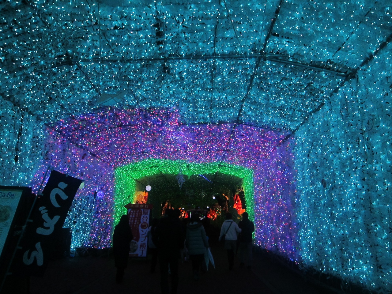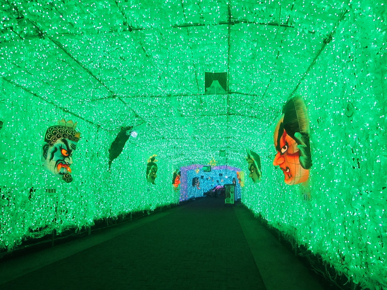 青森のねぶたとコラボして光のトンネルの中にねぶたが飾られていました。