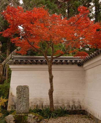 百人一首編纂の地、小倉山の麓にあり、秋の境内は赤やオレンジ色の紅葉でいっぱいになり