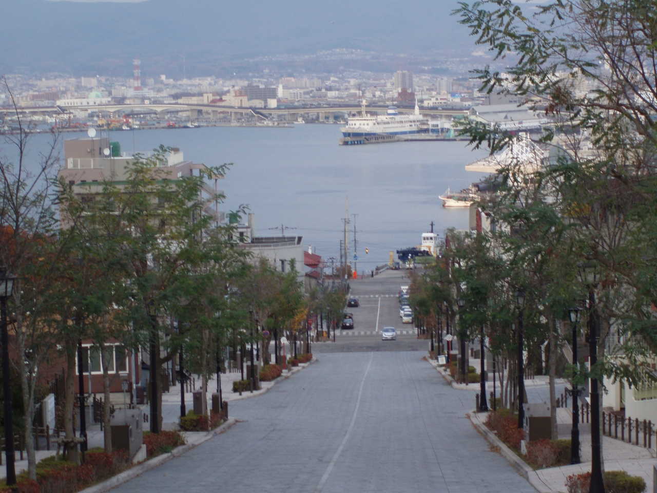 函館の八幡坂から見る港の風景が大好き。最高の下り坂。人生下り坂もあるが上り上昇の最高もあり、青函連絡船に乗るチャンスはなかったが、函館のこの坂道こそ人生上り下りの象徴化?大好きな路面電車に向かって、又、八幡坂を下る。