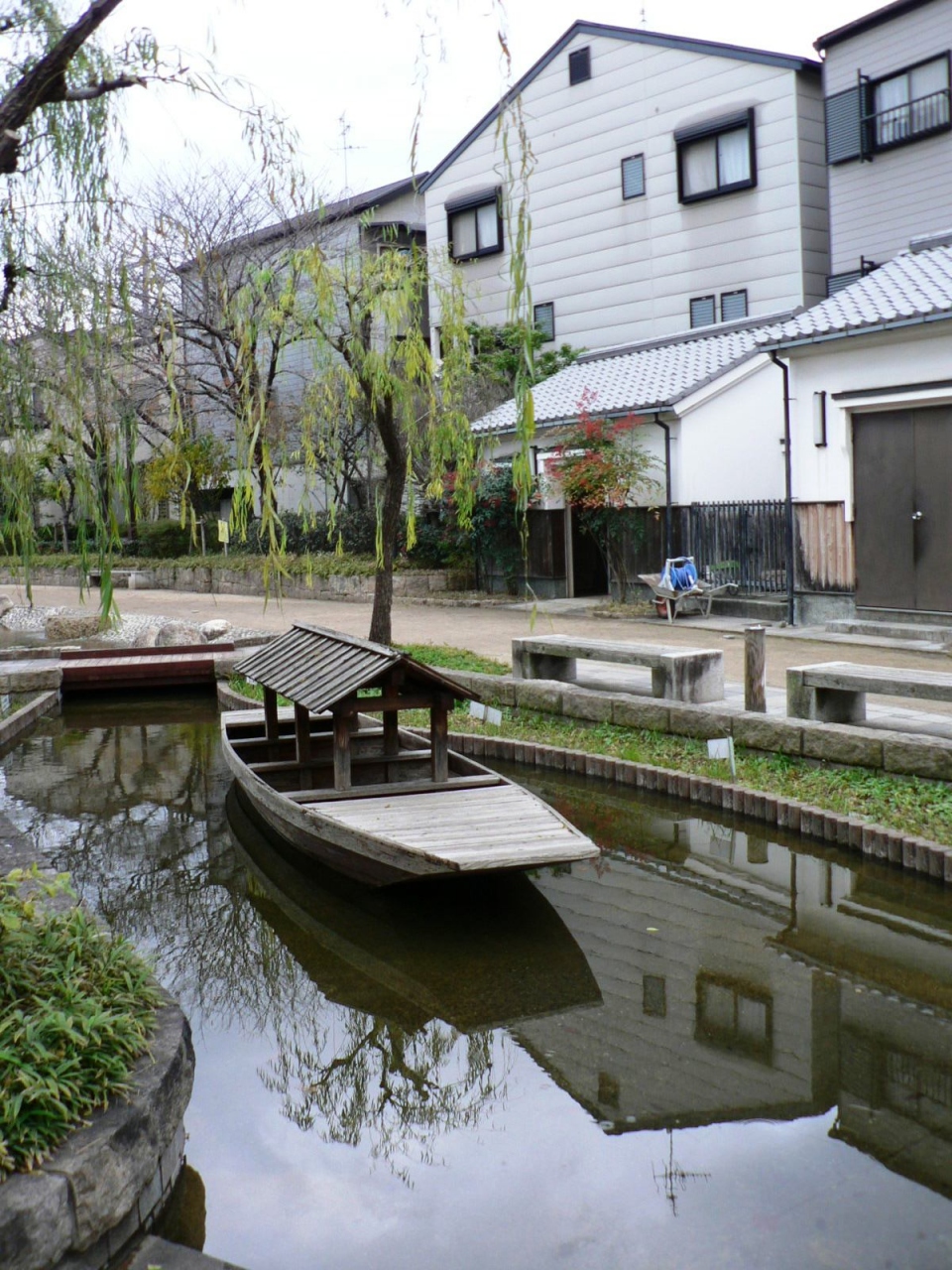 その水運の歴史にちなんで水辺を整備し水面回廊と名づけて三十石船のレプリカも浮かんでいる。
