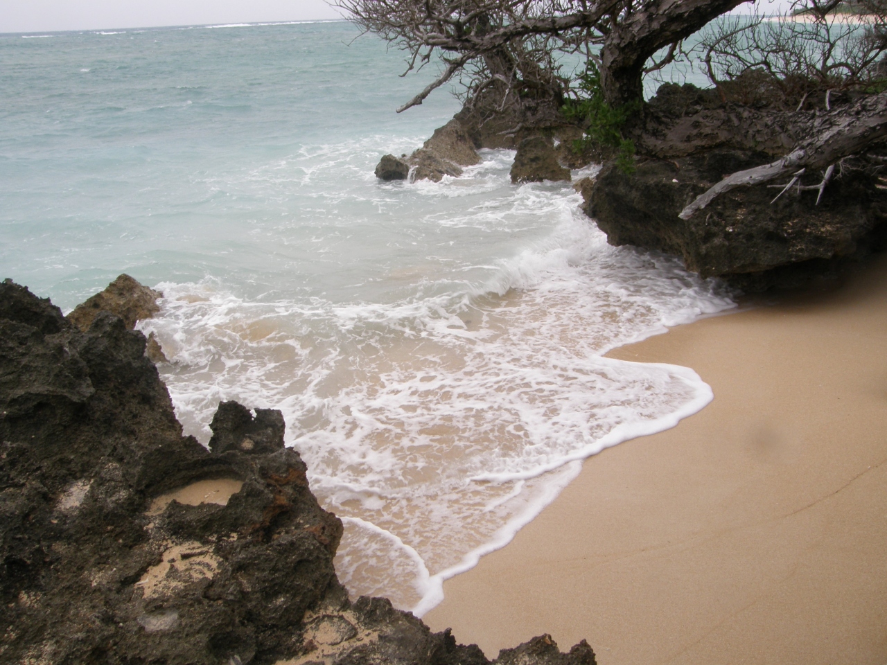 ハマシタンとは隆起サンゴ礁の上に太い幹をぐねぐねとくねらせながら育つ植物です。