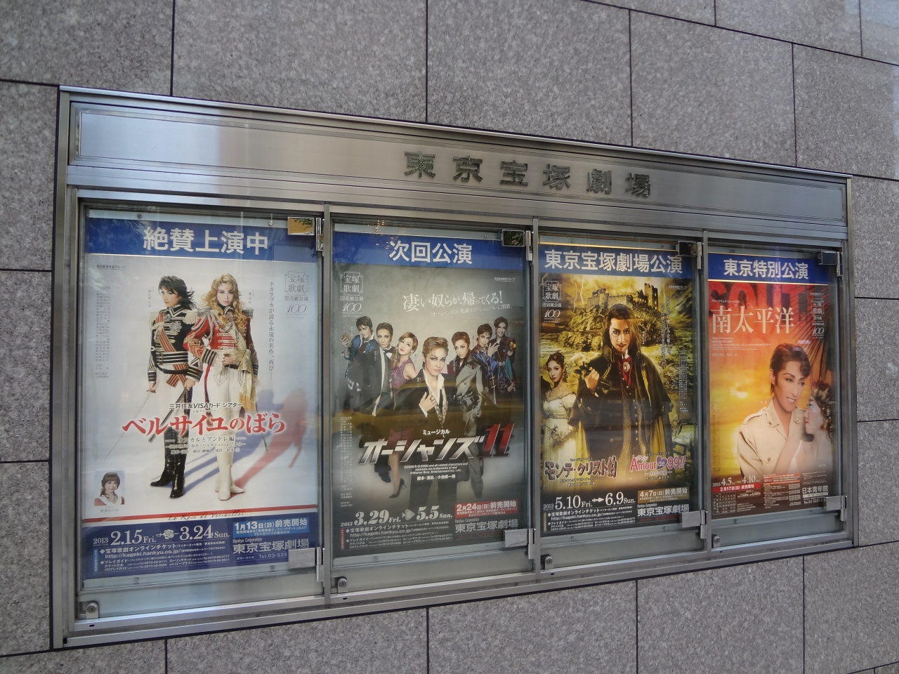 帝国ホテルの向かいにある東京宝塚劇場です。改装されてからも何回か観にいきました。特に熱狂的というわけではありませんが、たまに観にいくと、あの宝塚ワールドに引き込まれてしまいます。やはり圧巻ですね。近くを通ると、また観にいきたいなぁって気分になります。
