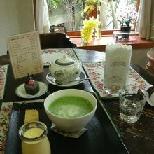 プリンと抹茶オレ、居ごこちのよいカフェタイム