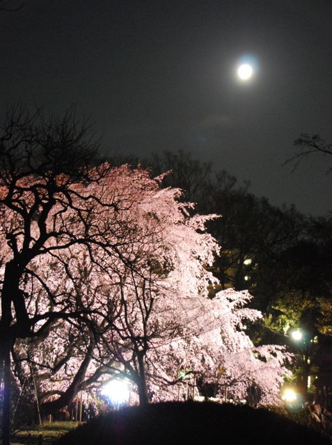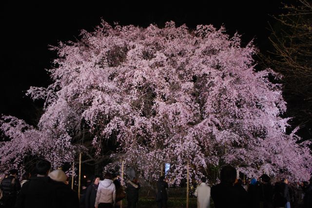 入り口入ってすぐに出迎えてくれる枝垂桜、夜はライトアップもあります。