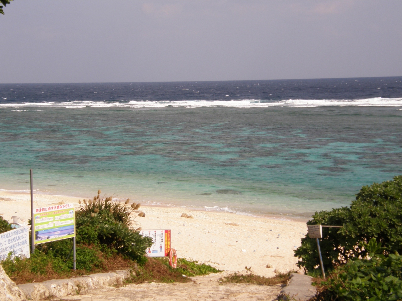 坂の上に有料駐車場があり、ビーチまでは送迎となります。