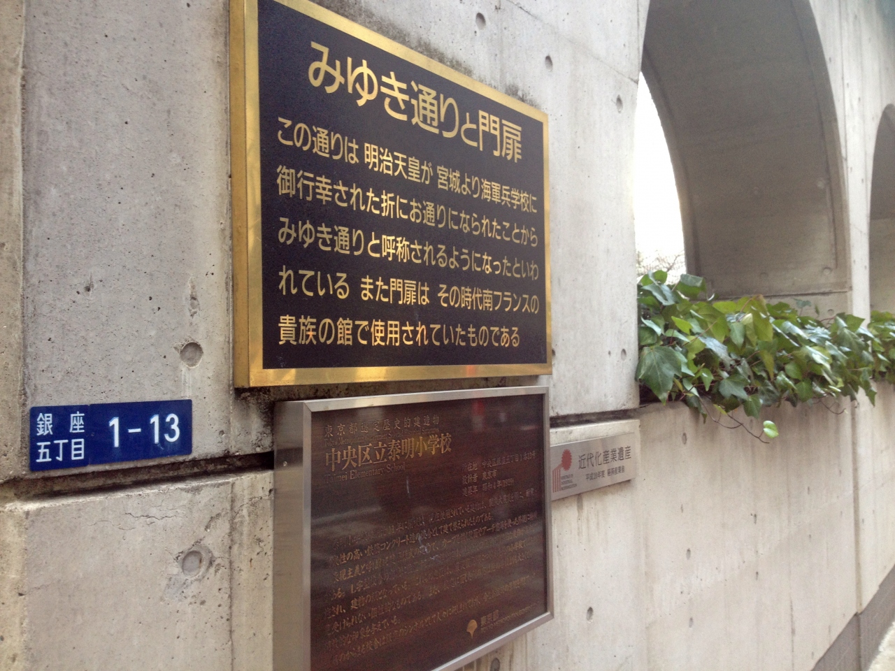 建物は、校門のフランス門、校舎に絡まるツタ、アーチ形の窓などのデザインが有名で、銀座みゆき通りのシンボルの1つとなっている。東京都選定歴史的建造物と経済産業省近代化産業遺産に指定されている。