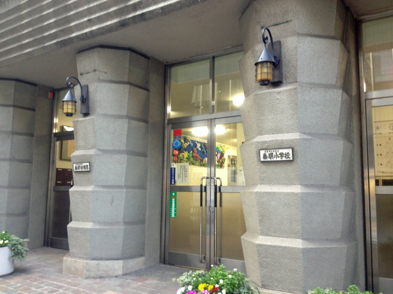 泰明小学校は、1878年(明治11年)創立。関東大震災で全焼後に鉄筋コンクリートづくりの校舎で再建されており、復興小学校のひとつに数えられている。