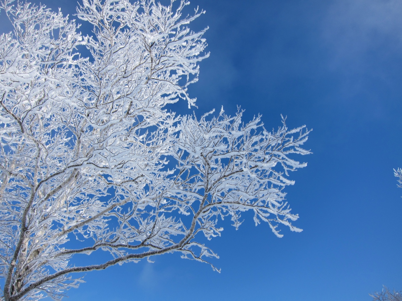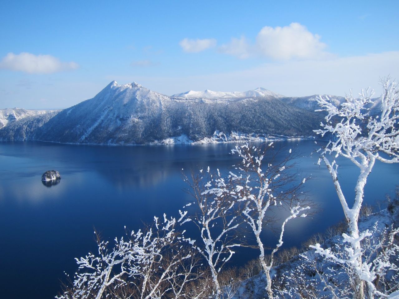 行った日は霧氷がきれいで、空と湖の青さにとてもよく映えていました。