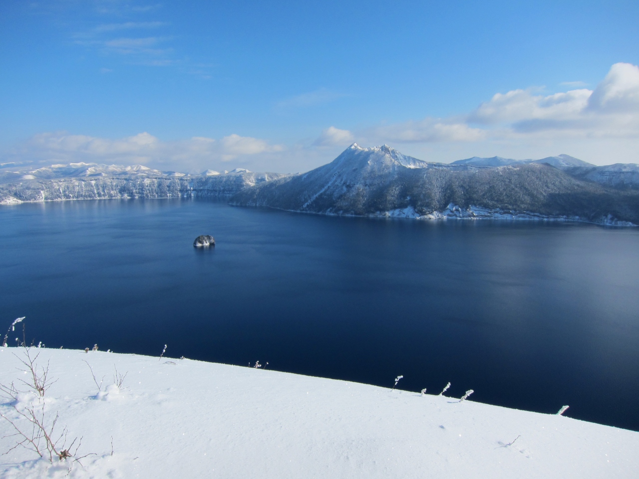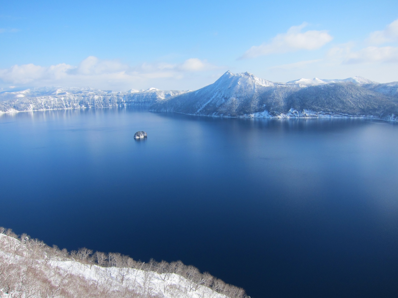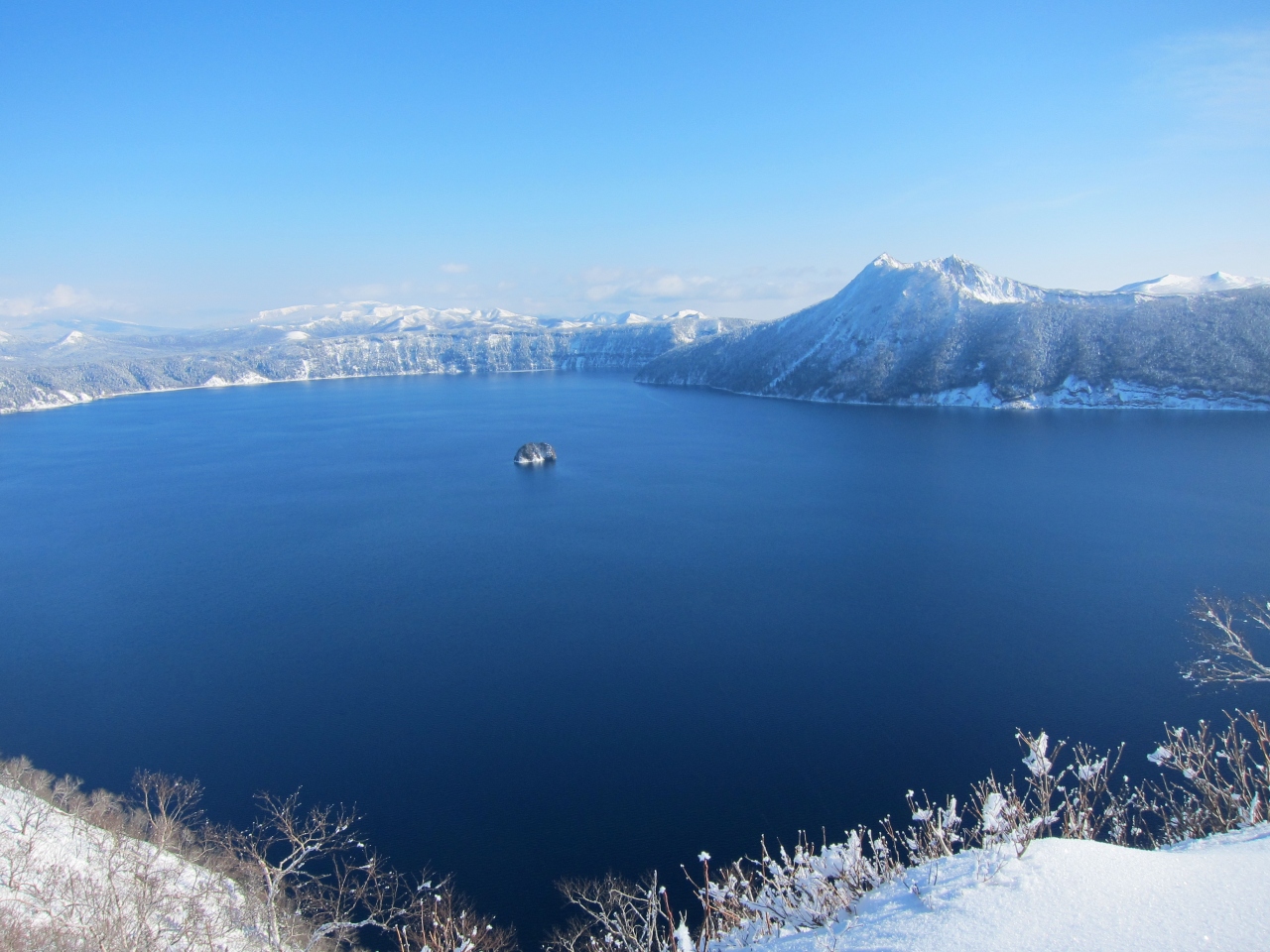地元の人から聞いたのですが、道東は太平洋側なので冬になると晴れる日がけっこうありますが、摩周湖近辺、特に網走側は、流氷が接岸して周囲が冷えないと、なかなか晴れないそうです。つまり流氷が本格的に接岸する2月に入ってからの方が全体的に晴れるようです。また、湖が結氷してしまうと景色が真っ白になってしまいます。行った日もそうでしたが、結氷していない、または一部しか結氷していない時期の方が湖面に空の青空が映えて美しいと思います。