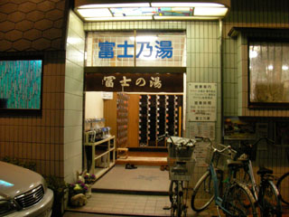 東急東横線の綱島駅のあたりは昔は温泉街で、今では駅の東側に綱島温泉東京園が残っていますが、反対側の西口の住宅街の中のビルに黒湯の温泉銭湯の富士乃湯があります。綱島駅から商店街を通って、北西に向かうバス通りに出て、上町のバス停の先に富士の湯入口の看板を左折し、少し先のビルの中に温泉銭湯があります。