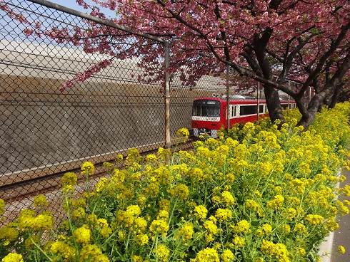 京浜急行の三浦海岸駅と三崎口駅間に一足早い春が来ました。
