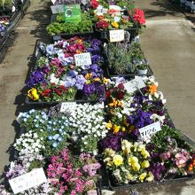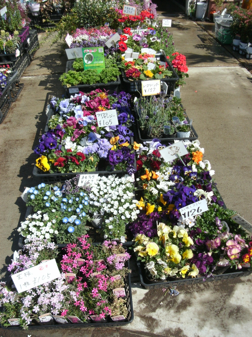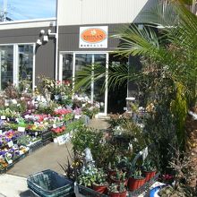 店頭(外)には、一般的な鉢植え花がセール中でした。