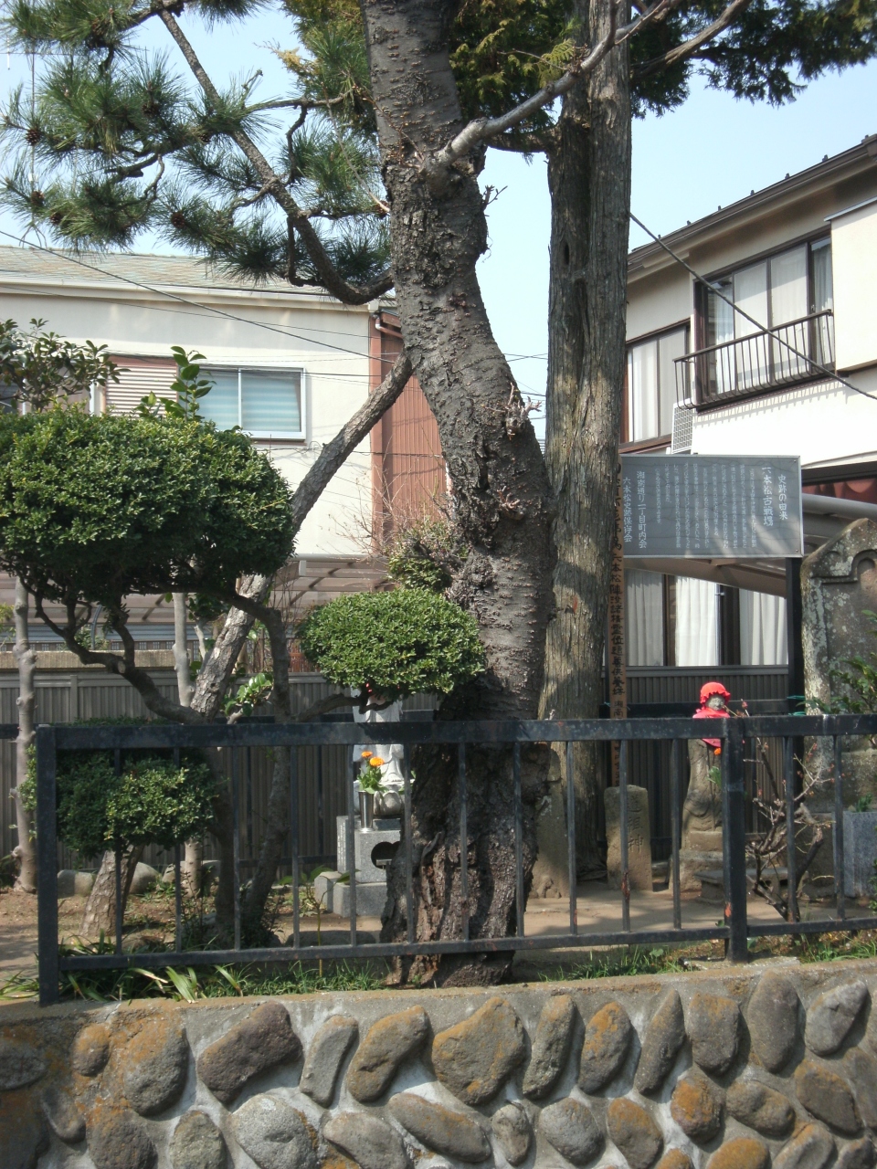 街歩き中に出会いました。ここだけ異様な空間(囲いの台地)。古い石物像群・お地蔵さん、なにかいわれがありそうな松、お線香あげた跡がある。案内板が建っていました。それによると、この場所は源頼朝と大庭三郎影親勢の戦闘により討ち死にされた勇士を供養、地域で後世に残しているとのこと。ガイド(観光等)には載っていそうもない。史跡探訪者には貴重なスポットでしょう。