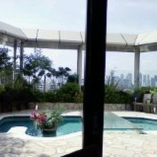 プールがあり、その先に東京の高層ビル群が見えて何とも贅沢な気分を