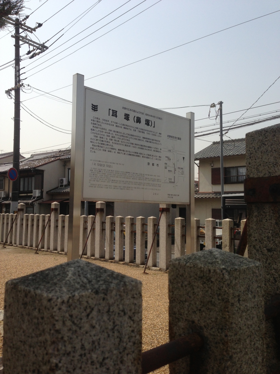 豊臣秀吉が朝鮮出兵の際に戦功の証として、約2万人分の耳や鼻を削ぎ落としたものを持ち帰り、この地に埋めたとされています。腐敗するのを防ぐために、塩漬けや酒漬にして持ち帰ったらしいです。なんとも恐ろしい話ですが、検分が終わった後は、丁重に供養されたようです。