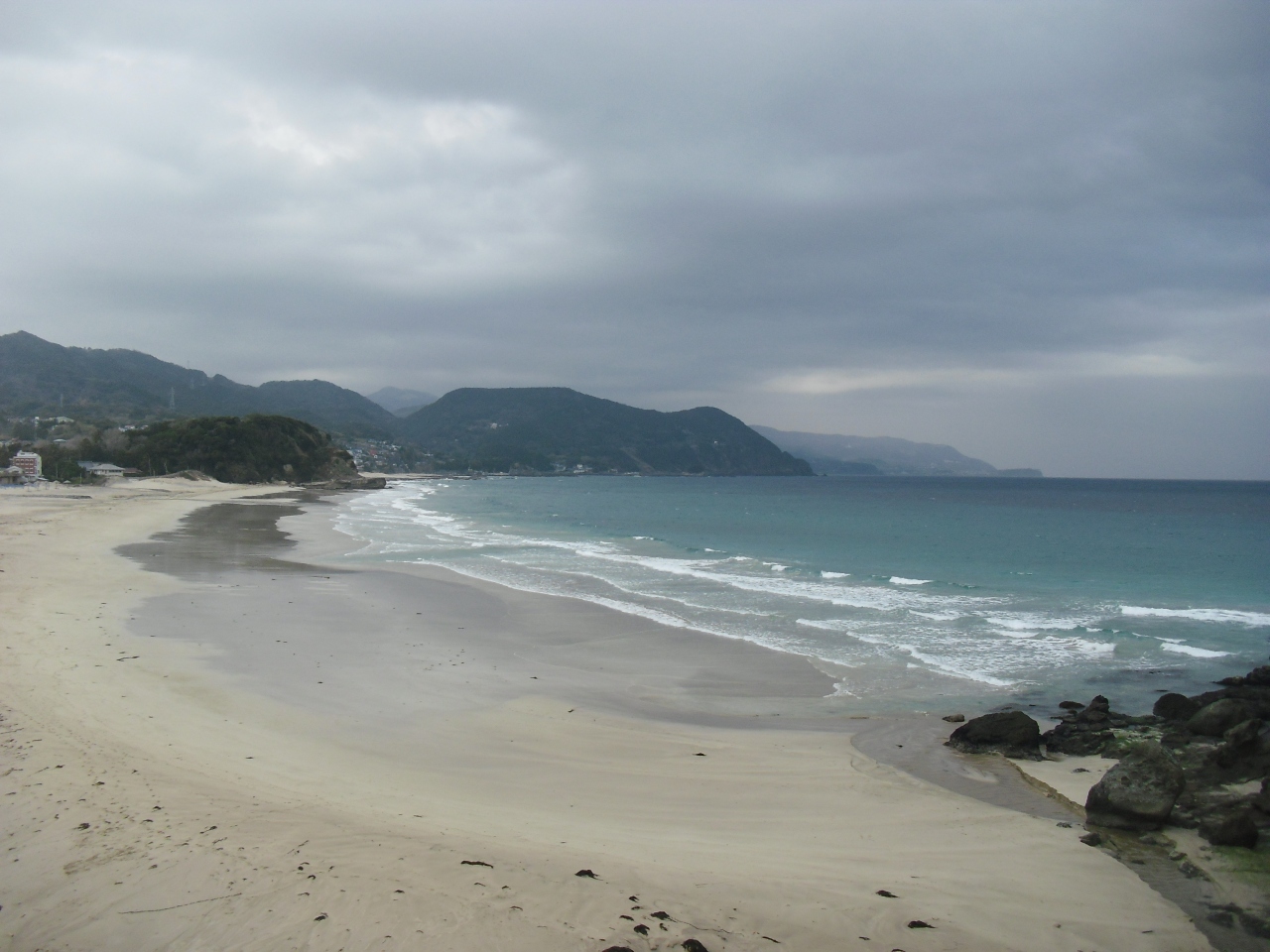 とても綺麗な海岸だと思います。海の色は雲っていたのにもかかわらずまるで沖縄の海の色みたいな青色でした。海岸もそれほど大きくはないですがラインがとても綺麗でした。