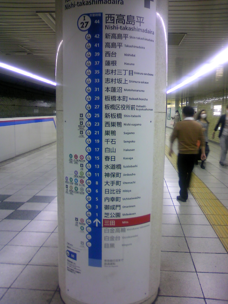 羽田空港から京急で都営浅草線に入り、三田駅で都営三田線に乗換え。