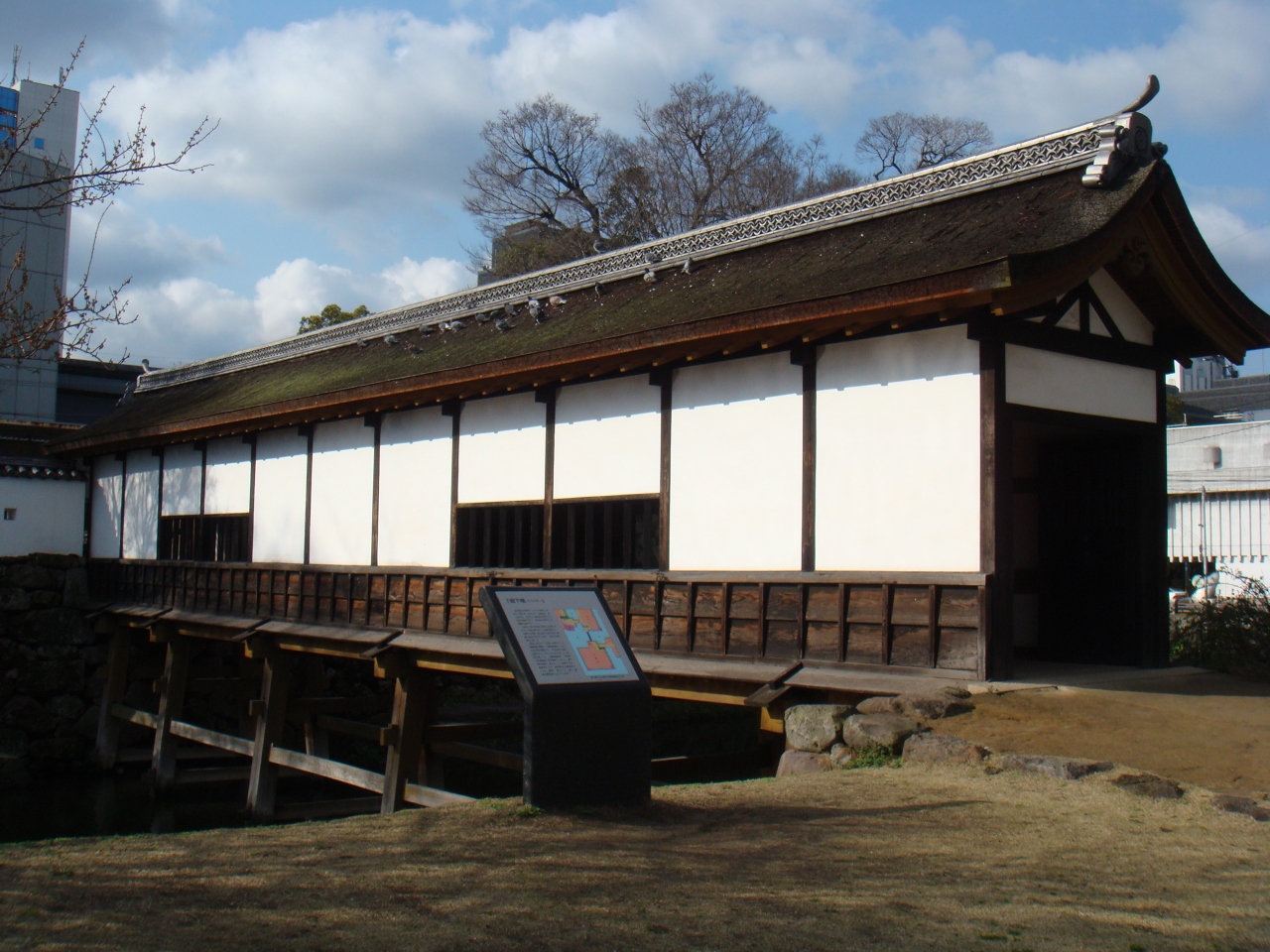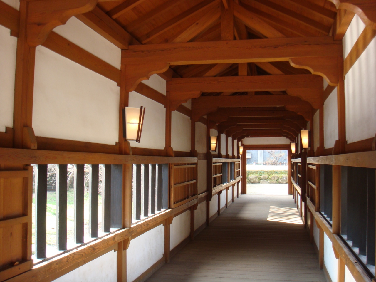 お城ということですが、残っているのはお堀と石垣、再建された櫓や廊下橋くらいです。