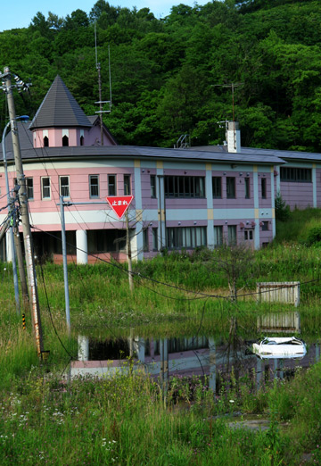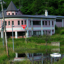 駐車場からすぐ近く、散策路入り口にある旧消防署があります。