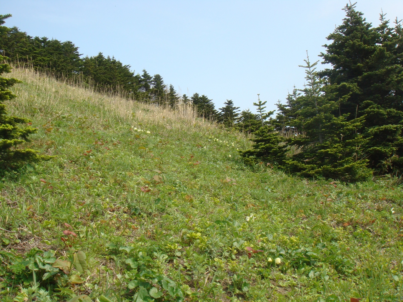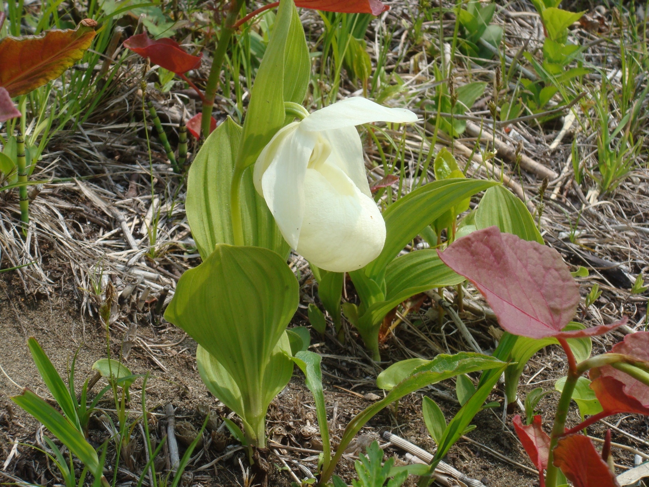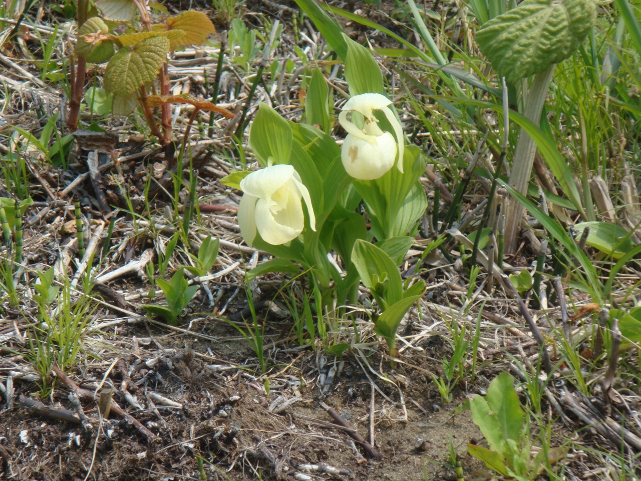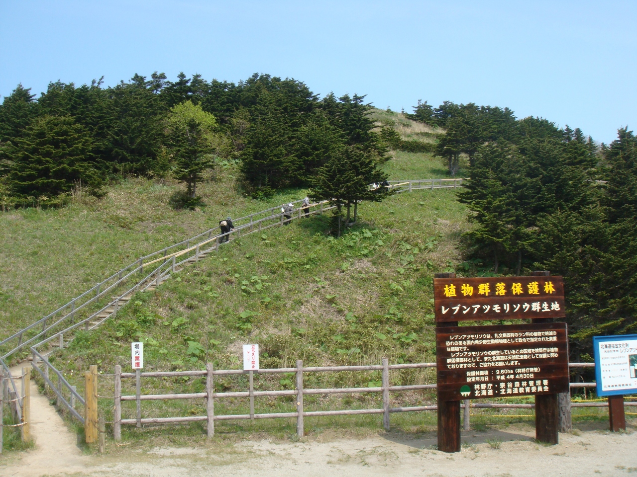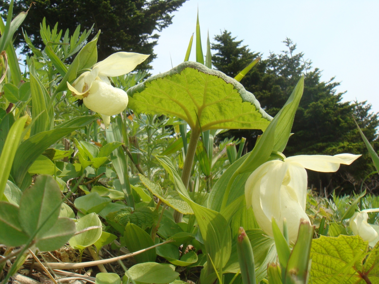 行ったのは5月の終わり。ちょうどレブンアツモリソウが満開のころでした(その年の気候にもよると思います)。ツアーではない個人旅行でしたので群生地まではタクシーを利用しました。小さな島かと思っていたら、南側の香深港から北側の群生地までかなりの距離があります。しかし行くだけの価値はあると思います。植物園にある鉢植えと違って、斜面のあちこちにアツモリソウがいっぱい咲いている圧巻の景色を見ることができます。ときどき赤みがかったアツモリソウがありましたが、種類が違うそうで白いアツモリソウと交雑しないよう抜いてしまうそうです。勿体無い気もします(もらえればいいのに…)。